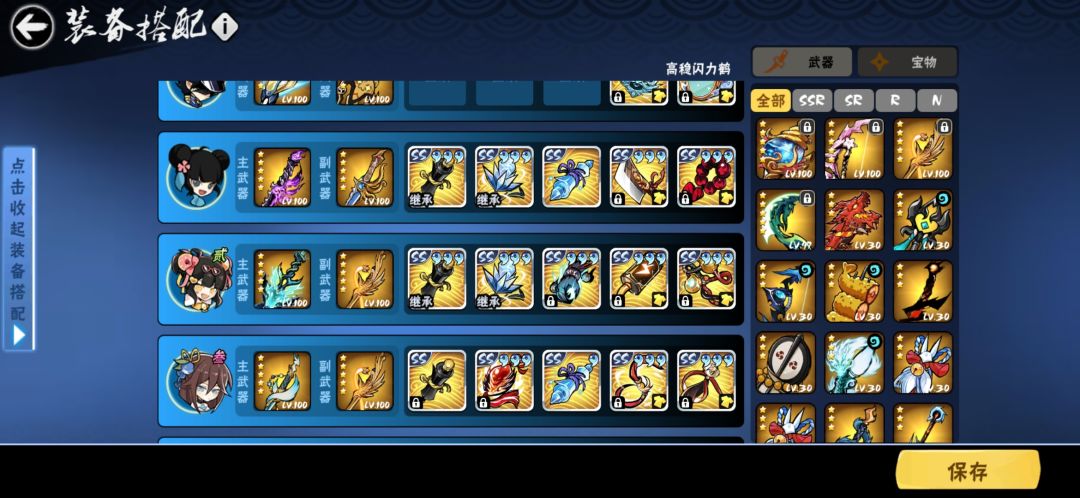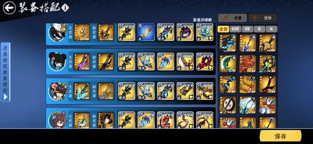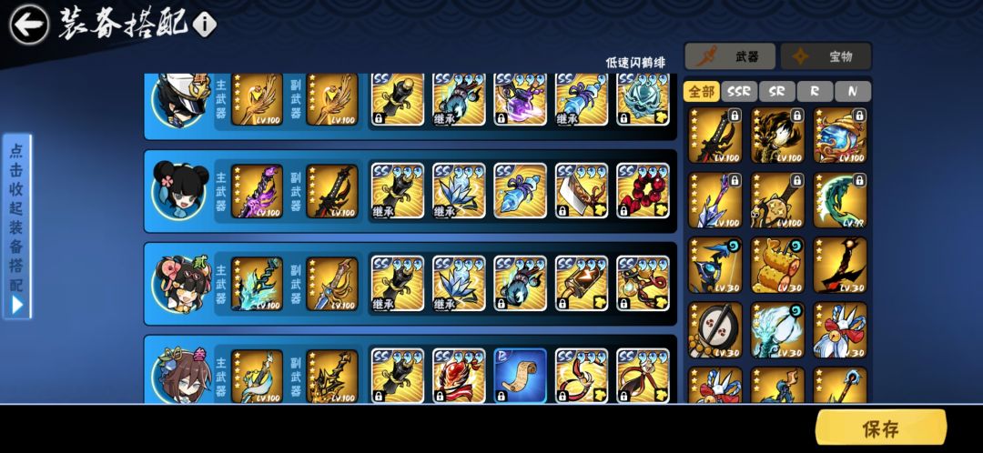 接力绯斩 可以带主武器方面的宝物 低层速度很快 很少会用到第三角色用到也基本打俩武器就结束了