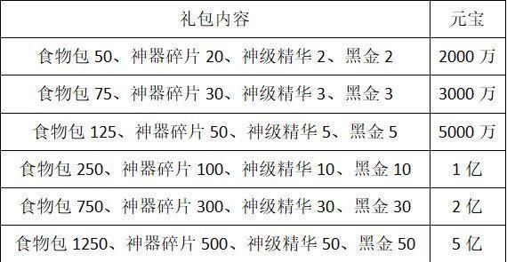 以下限购活动当角色等级100级以上可以参与,每个档位限制购买1次。其中食物包指的是:蛋炒饭、牛排、咖喱饭、青椒肉丝、鱼香肉丝。