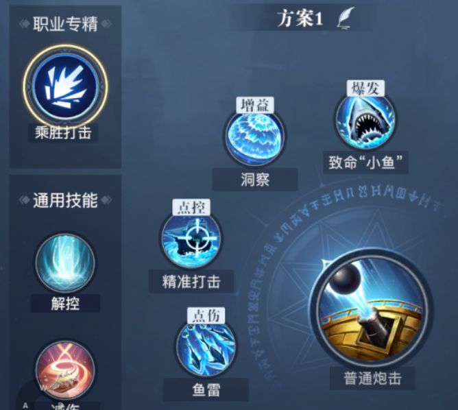 技能搭配推荐:“乘胜打击”+“鱼雷”+“精准打击”+“洞察”+“致命小鱼”