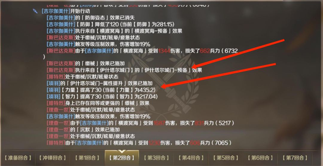 第二回合,伊什塔尔城门施加缴械,同时提高项羽属性。