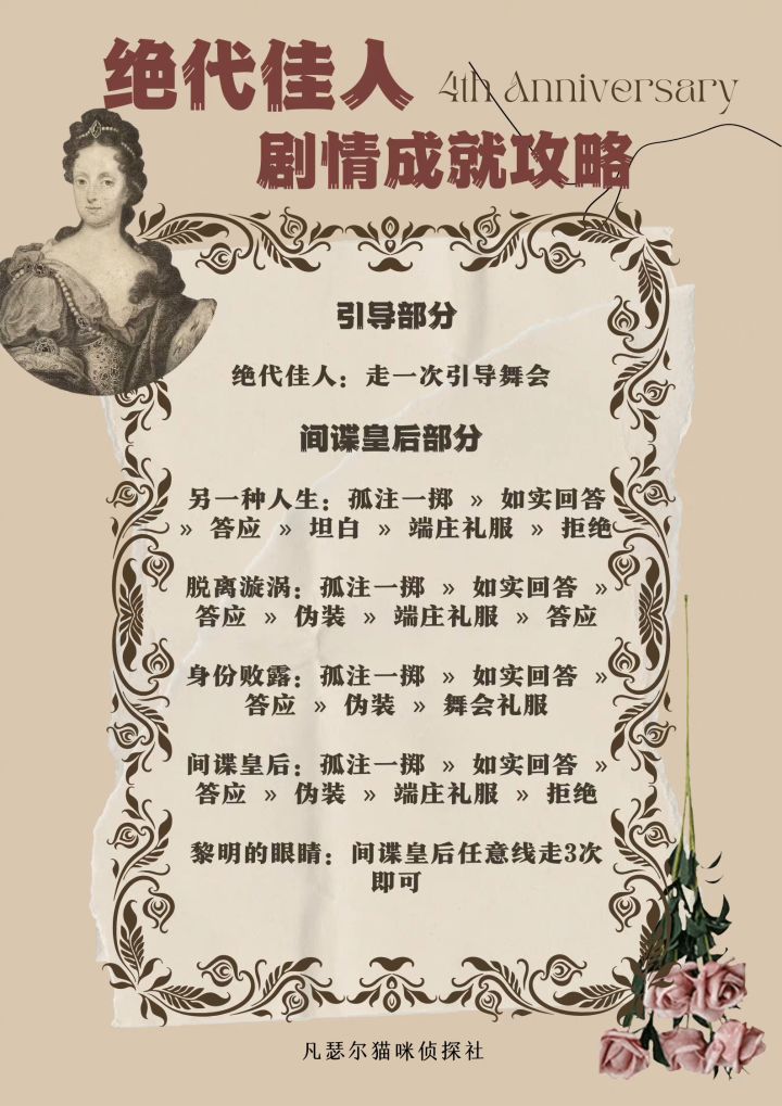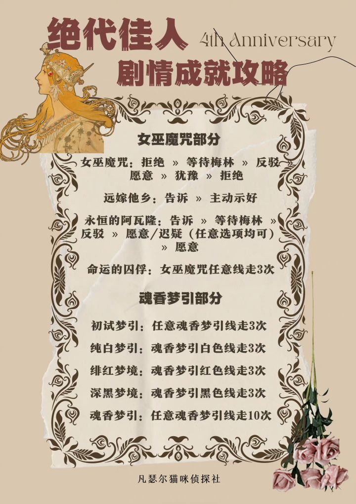 绝代佳人全攻略(转载自微博@凡瑟尔猫咪侦探社)