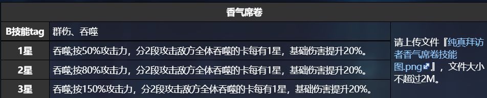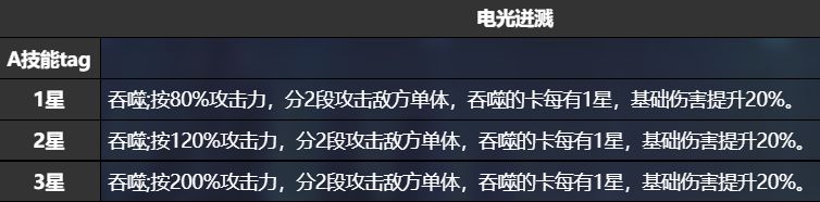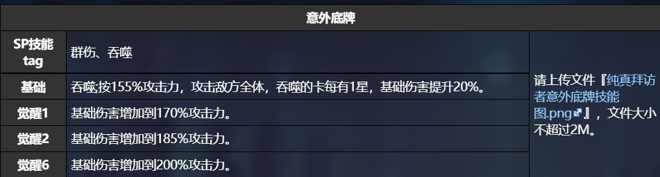 看出来了么兄弟们,三星纯真拜访者B技能倍率是比零度还要高的。而且sr比ssr好觉醒,而且B技能实际上比零度还好升星,因为零度必须要保证两个技能同时存在卡牌里才能保证升星,而实际上由于纯真拜访者吞噬的卡每有一星就可以加伤害20%,甚至只需要队友放aoe既可以升星技能,甚至觉醒四还可以加sp,四星技能可以加两点sp,觉醒四还可以,一回合哪怕不放技能都会加2点sp,导致两者实际上伤害差距并不大,而且由于好升星,所以当觉醒6的时候倍率远超零度。其实保守了,纯真拜访者配上两个aoe,效果是要比零度还要好用得。而且有很多的图,用aoe比单体舒服太多了,所以当对面四个小怪,你需要放三个aoe的队伍的时候,纯真拜访者效果实际上远超零度。