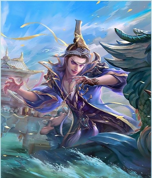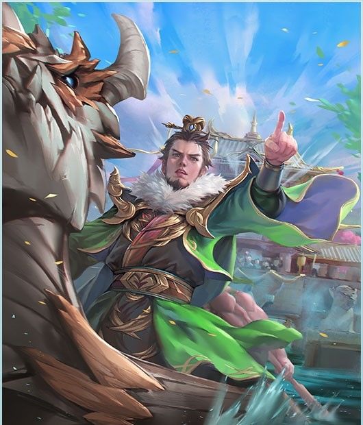 端午皮肤册由孙权、曹丕和刘禅组成,他们是三国中期的君主,他们三个人坐在龙舟上争渡,有着浓浓的节日气氛。孙权身着绿袍,左手直向远方,坚毅的眼神中透露着君主的威望,非常有气势;刘禅身着红袍,手上端着一只鸟儿,好像无心争渡,只是沉迷于自己的玩乐世界;曹丕直接站了起来,好像是一个冲浪的少年,体现出了他的年少有为。