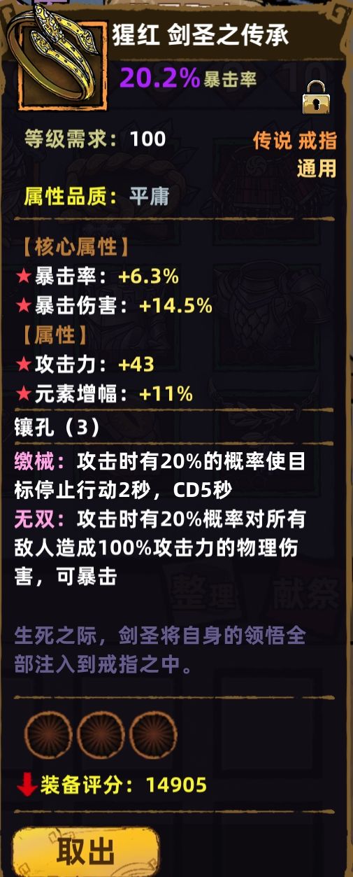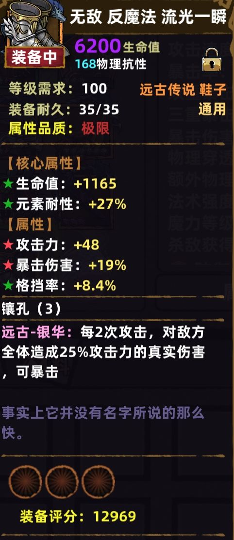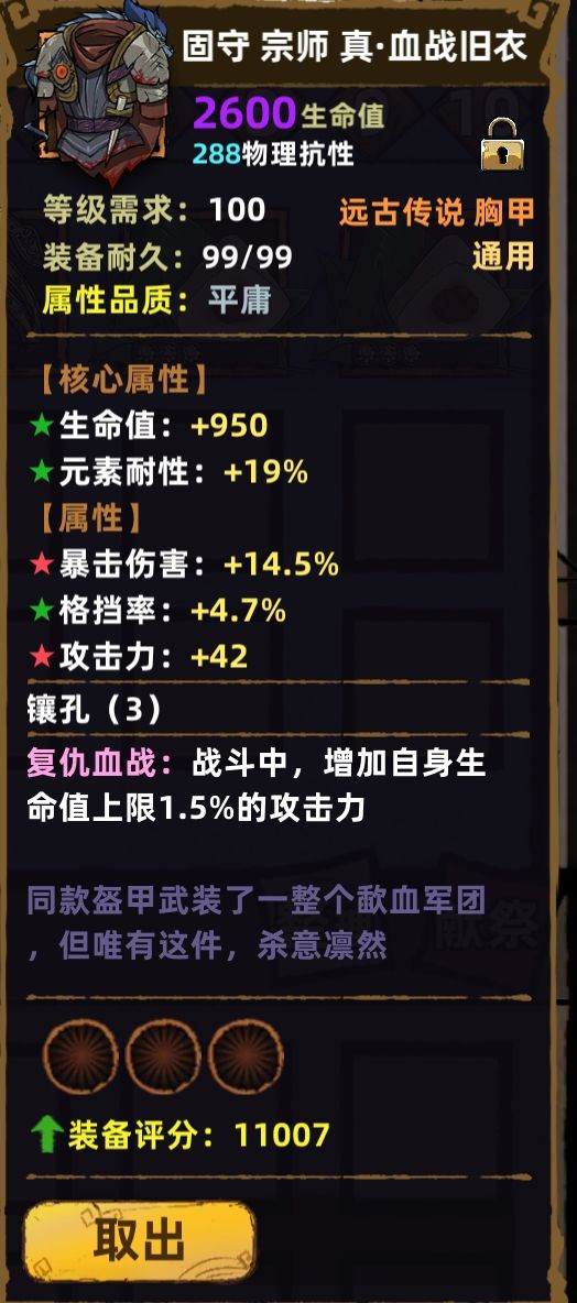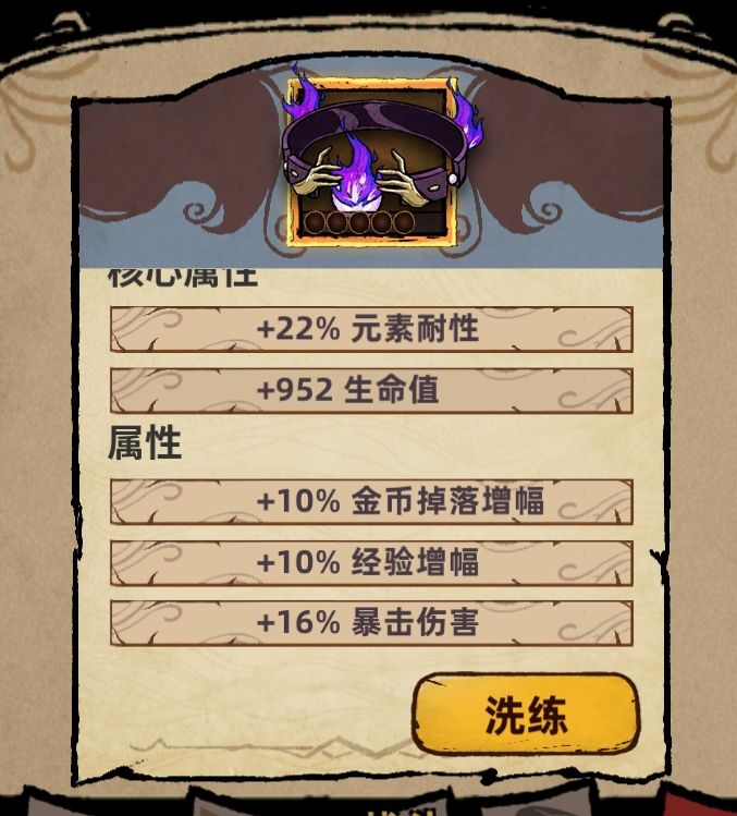 防具词条,核心属性有生命,副属性攻击、格挡、爆伤有其二,再洗缺的