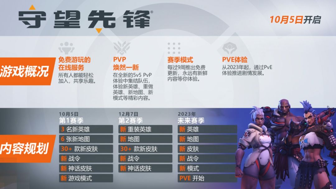 《守望2》将转换为免费游戏,取消开箱,转为战令与商城,英雄重做、推出新地图与模式,后续还会有PVE,每九周为一个赛季,目前已公布了三个赛季的更新内容。