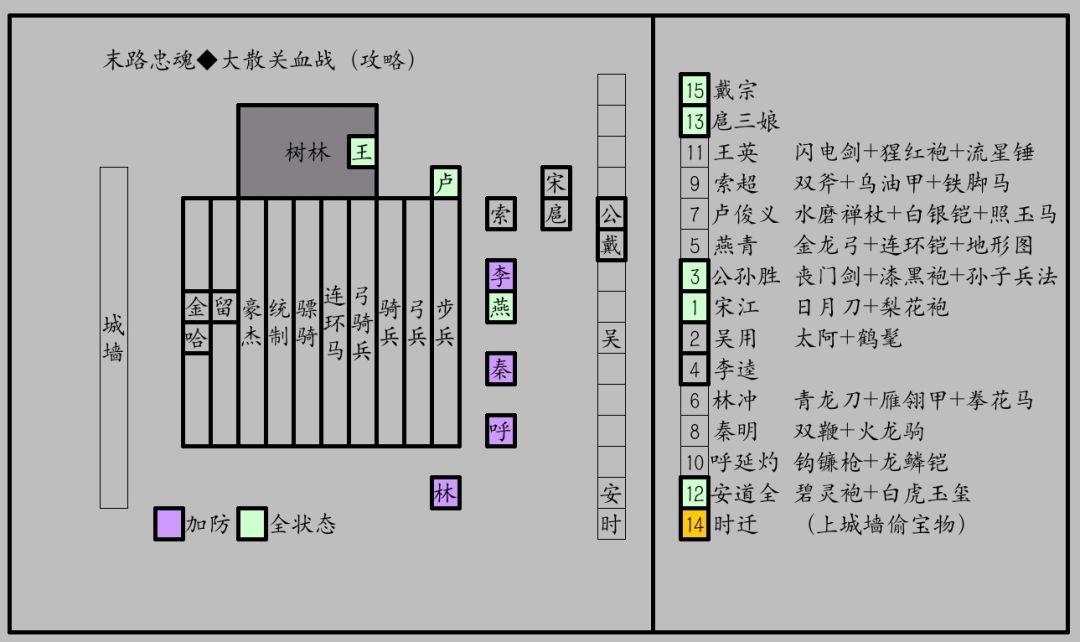 这是好多年前个人还是小白时候的攻略,现分享给喜欢水浒的萌新们,希望对你们通关有帮助!(图中出场人物及配装因人而异,地下宫殿人物选择关键在于地形适应,大散关人物选择关键在于战场卡位)