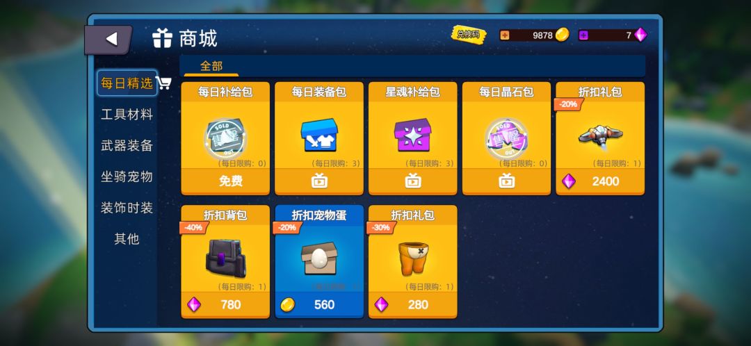 ★注意★:每天都会随机刷新折扣礼包,买折扣礼包更划算(优先买15格背包,25移速飞机)