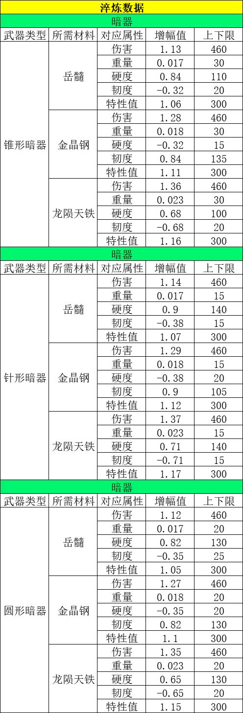 暗器的淬炼数据:简单来说,属性是很容易打高的。