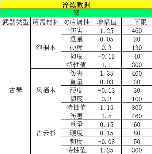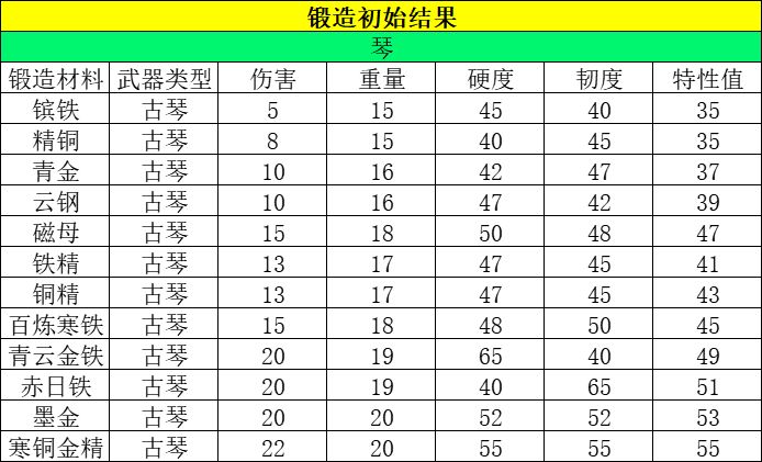 琴的初始结果:具体的熔点以及投入材料等请参考其他文件或攻略。