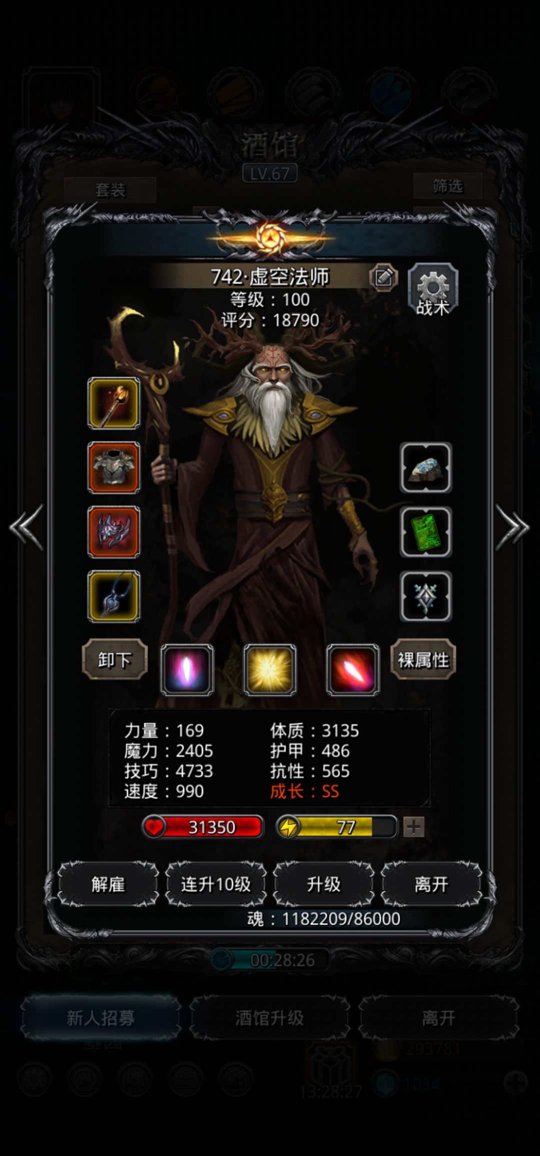 然后本来以为要6柱,实际是5柱,法师86,其他80,刺客60升的少。锻造115。可能这个看着要求比较高,但没有极品角色特别是黑骑就只能这样,战利品也都卷轴或者自己打得