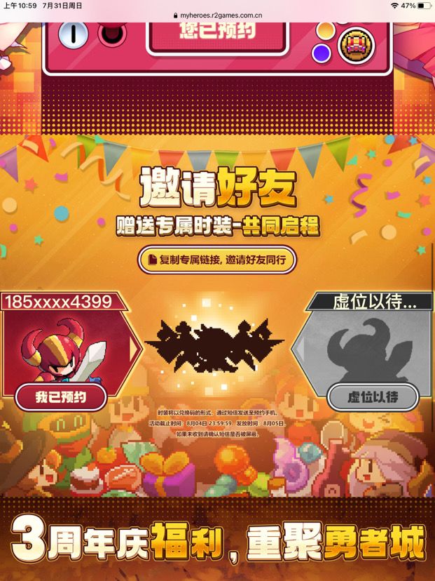 我预约《我的勇者》三周年庆典,快来一起预约领取限定时装吧!