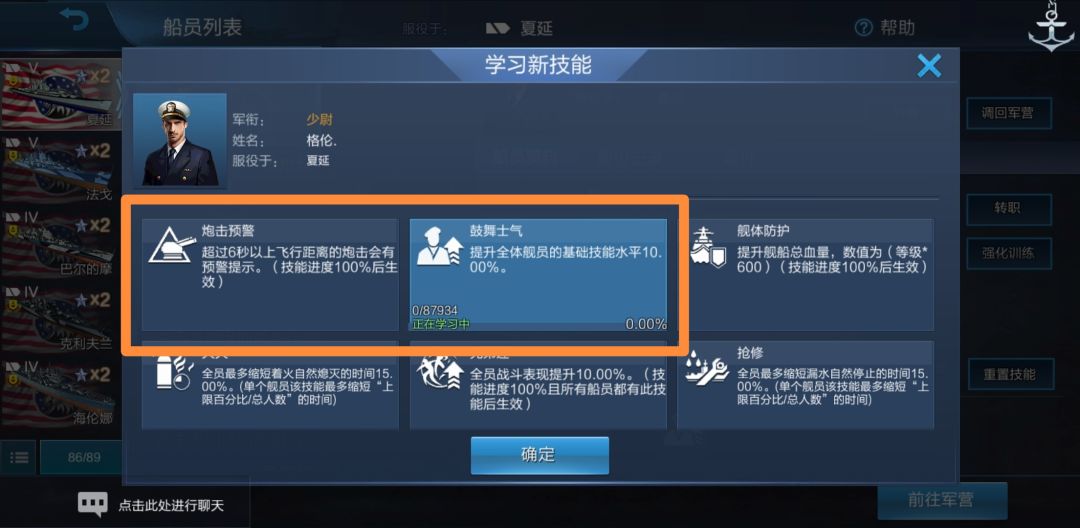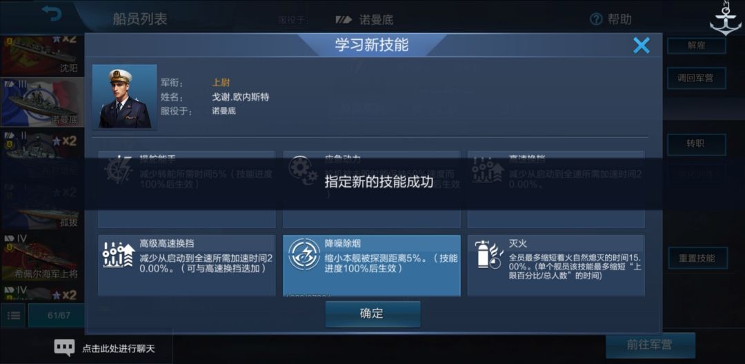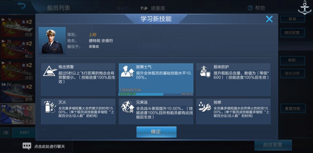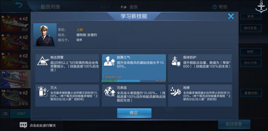 船员右侧又出现了“新技能!”字样。我们点击舰长: