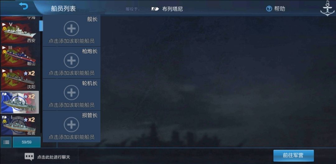 用同样的方式将另三名船员也调回军营,然后点击新船布列塔尼,点击舰长: