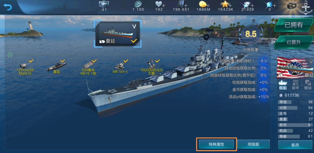 上图是美巡非线船夏延的科研界面,在下方有一个“特殊属性”: