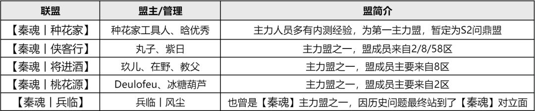 现今【秦魂】势力有4个主战盟。
