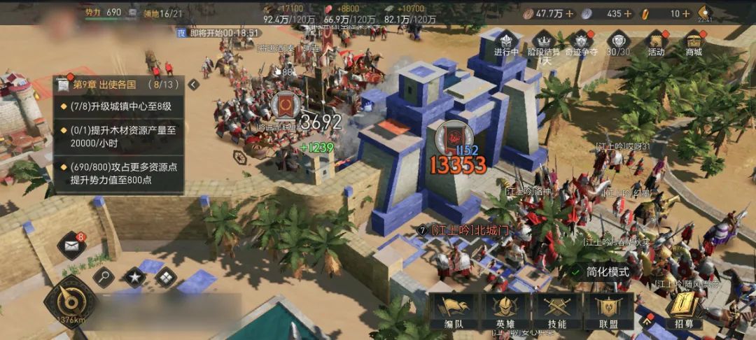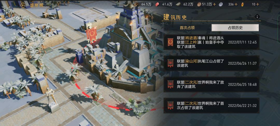 【将进酒】击败金沙洲三个小盟,顺利吸收人员满编出关,【兵临盟】依靠管理的高超指挥,在被三盟夹击的情况下顺利出关,且与七水流域【人未尽】会师君临北。