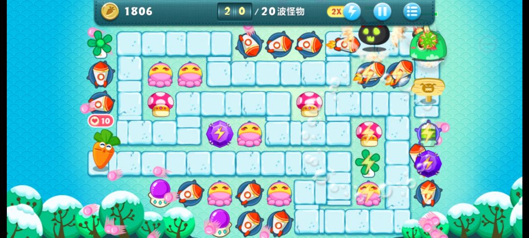 最后一波其他怪都清了以后,章鱼叶轮全买了换魔法球单体攻击章鱼蓝怪。