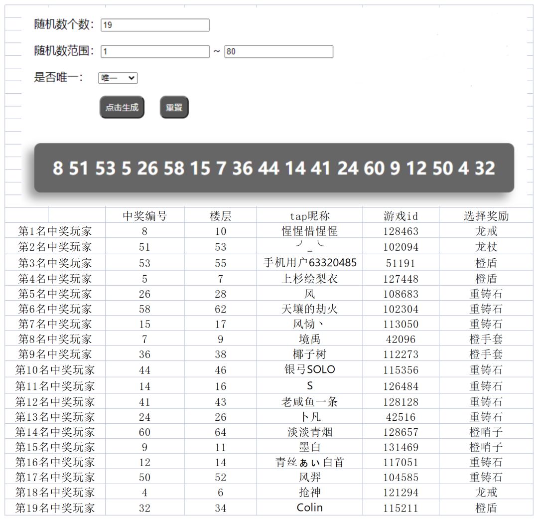 恭喜以下玩家获奖,如需更换奖励请尽快联系游戏管理人员-“辰淼”领取奖励,如无更改需求,一日后将根据活动贴下留言发放奖励,请大家积极参加活动,下一个幸运儿或许就是你
