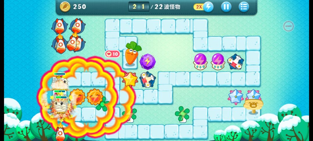 重点:❗要拿金萝卜难点在于最后一波可能会漏一两只绿怪,所以要在控速的地方多放魔法球,不然怪跑太快攻击不了多久。