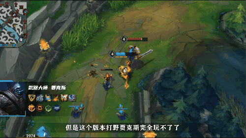贾克斯在此前的版本中以打野为主,但在3.3改动之后打野贾克斯就完全无法使用了,不过对单人路的贾克斯进行了增强,基础攻击力增加了6点,Q(1)和W(2)技能伤害分别提升了10点,E(3)冷却时间前期降低,后期保持不变。