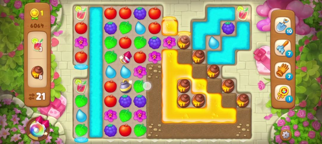 然后匹配花朵又用了一步收集到一个蜂蜜罐👇👇
