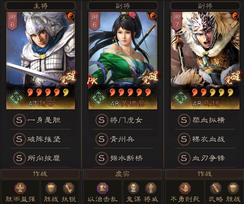 总结:这个队伍常规来说在单挑的时候只要别出现马超被盛气凌敌,然后赵云还演戏的情况基本上单挑都很难输,稍微发挥好一点就很容易持续给对方控制和输出压力,然后低战损赢下!由于队伍有着青州兵和比较稳定的控制力,所以也具备着比较给力的多穿强度,至于武将红度马超是最重要的,赵云和关妹能达到半红就完全够用了!