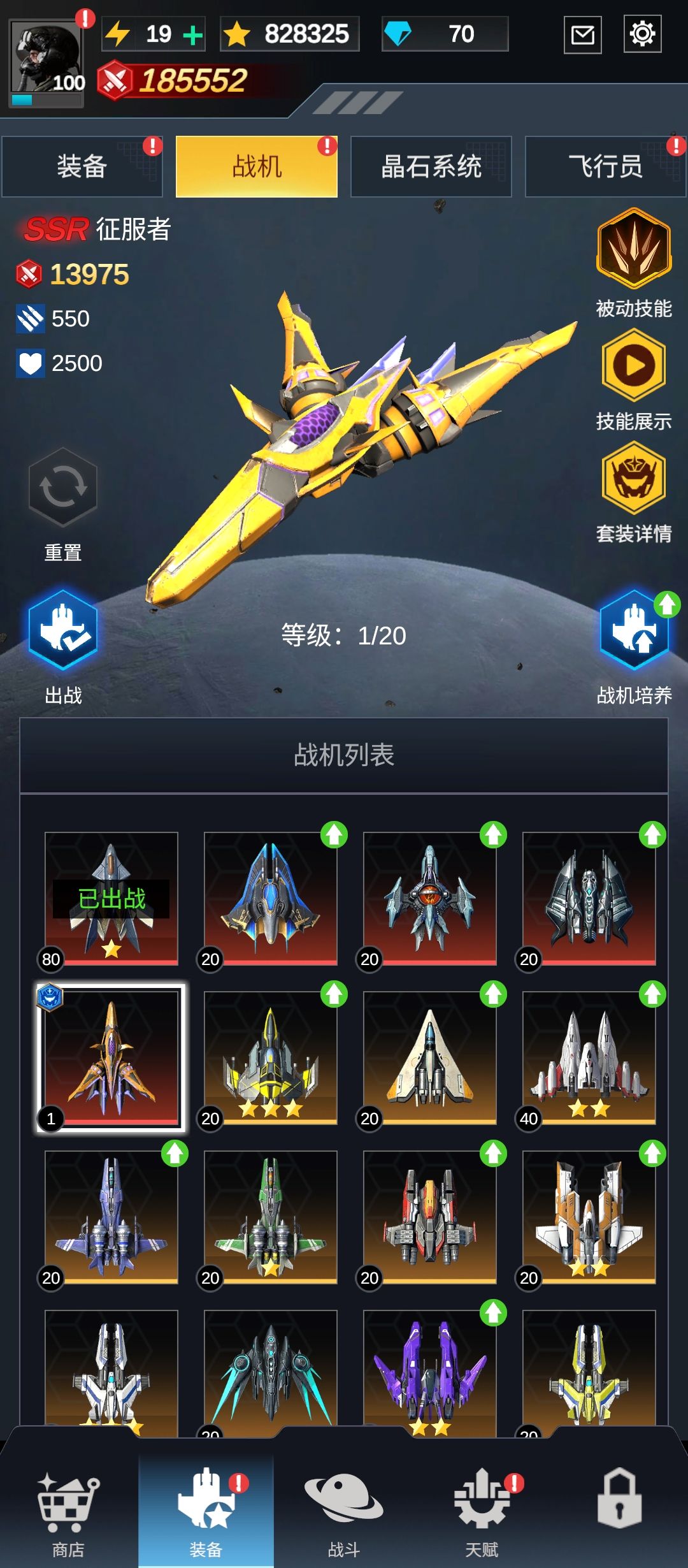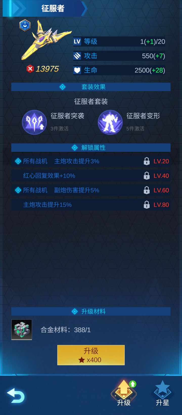 征服者战机的默认属性