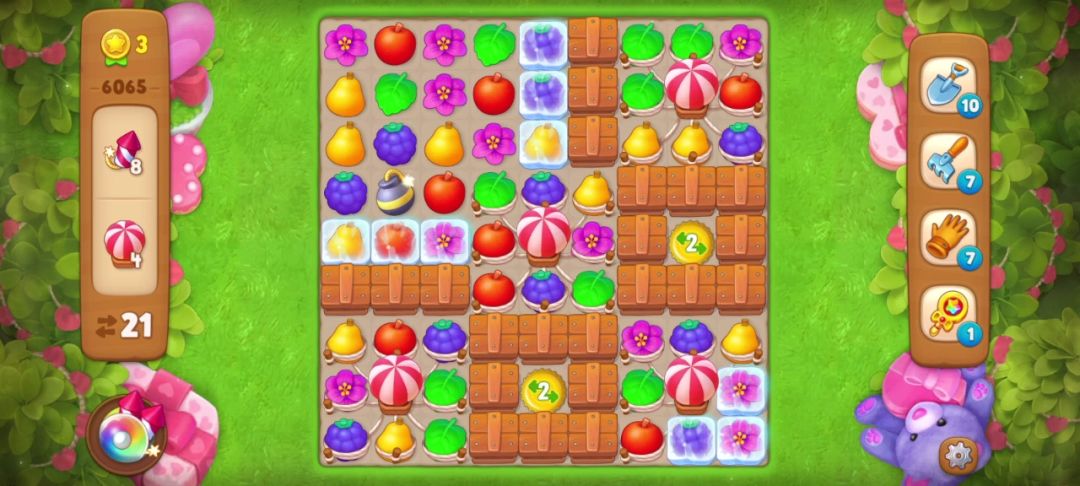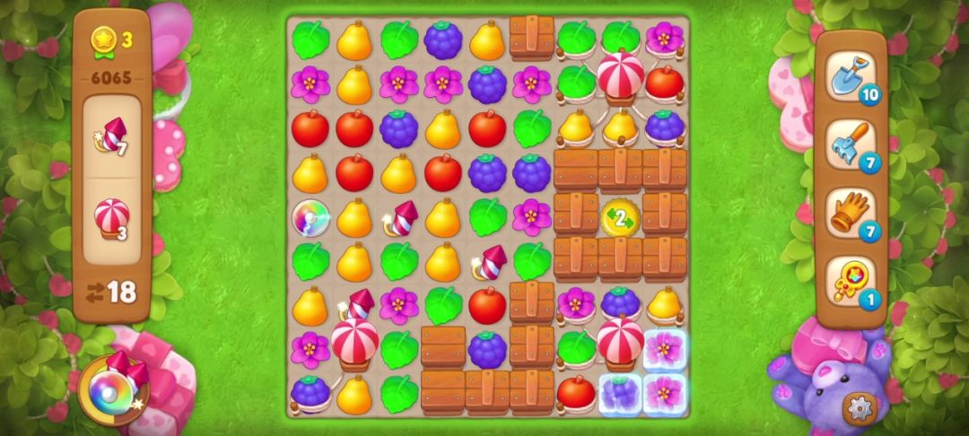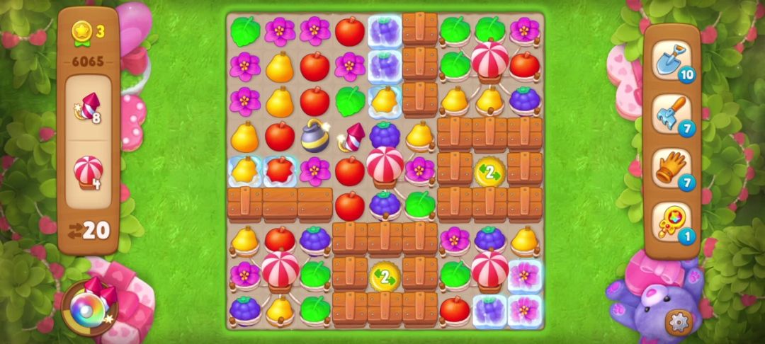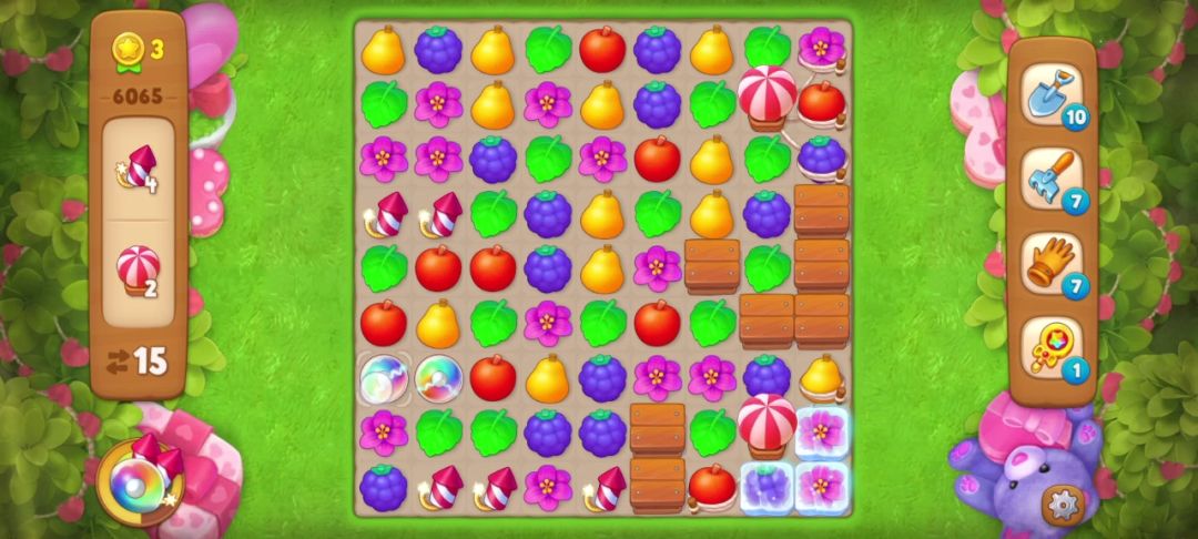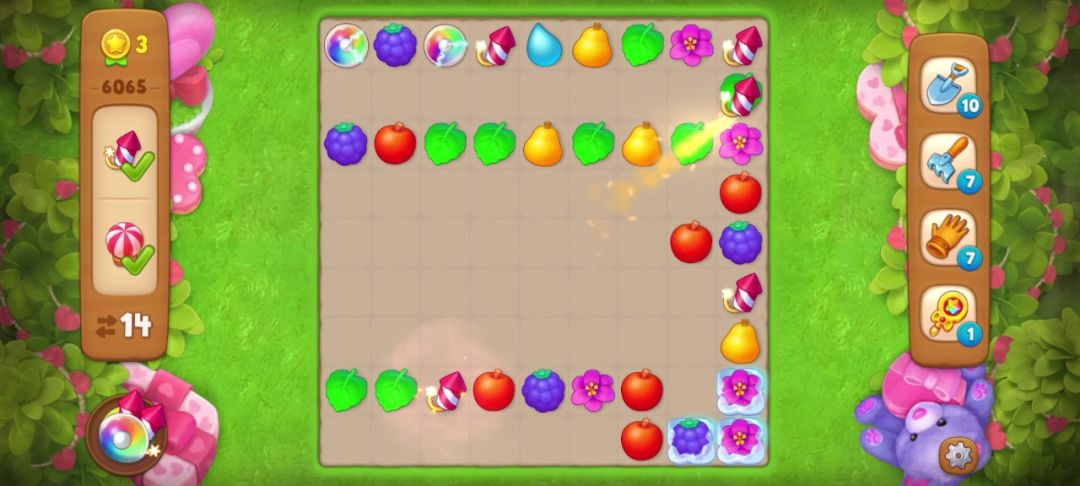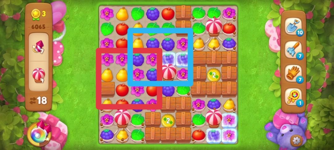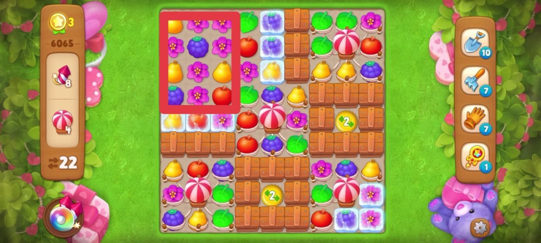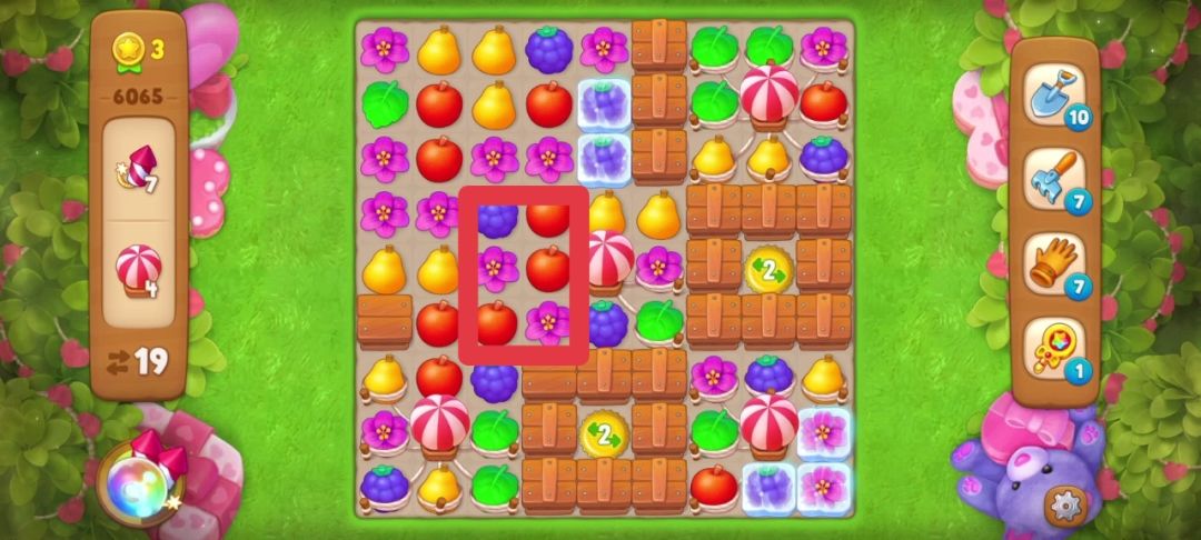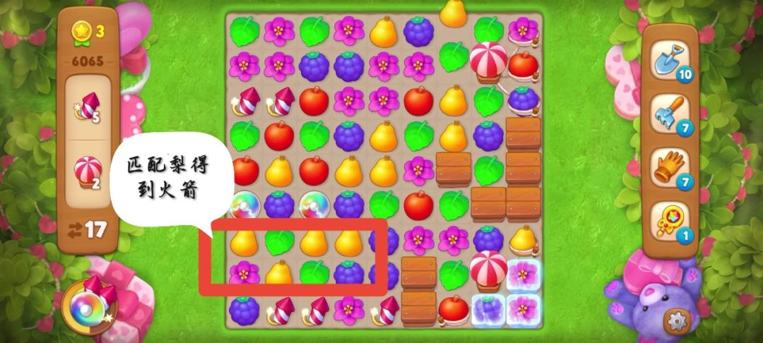 开局匹配花朵(红框内)可以得到一个炸/弹👇👇
