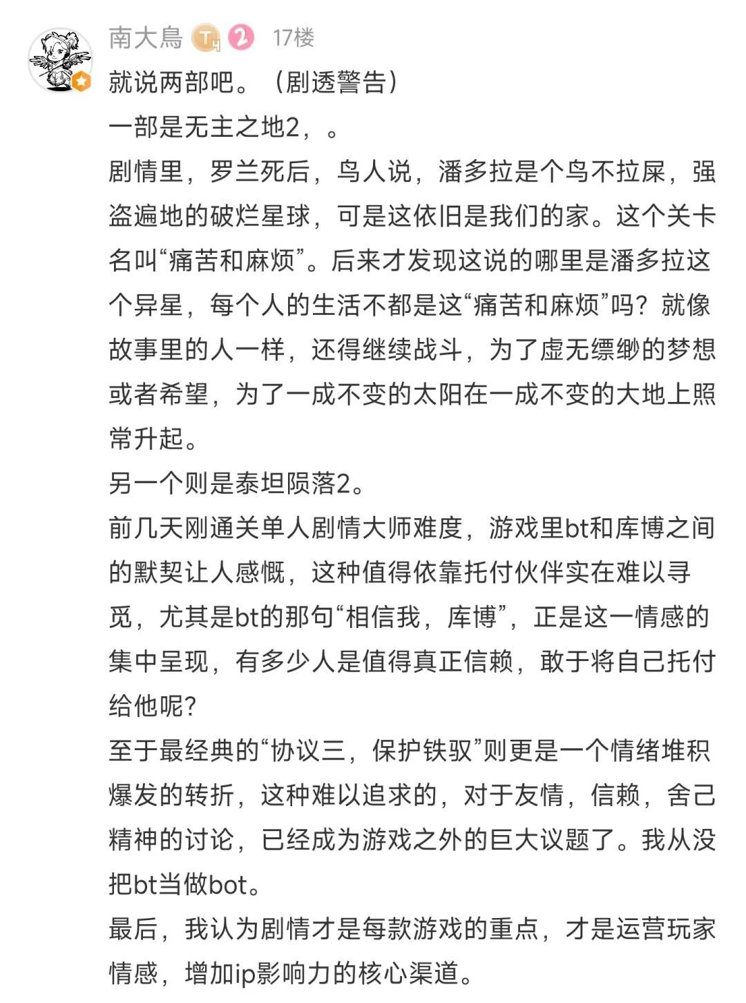 我一直认为评价游戏也好,评价其他艺术作品也好,更适合用“喜欢不喜欢”这样的说法,而不是“好不好”。主观的喜好是自由的,但是任何人的喜好也不能代表所有人。