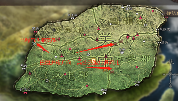 (图片中战斗标记的方向往河北移动,代表巴蜀将河北打退,战线移动)