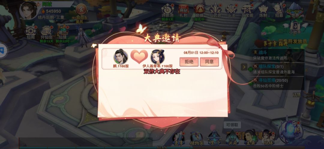 我已经邀请了所有好友参加大典,但退出游戏再登录之后,重置了。