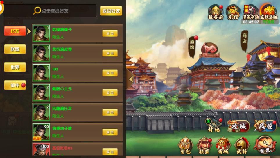 ①聊天功能:玩家可在游戏中分联盟和世界两个频道聊天。