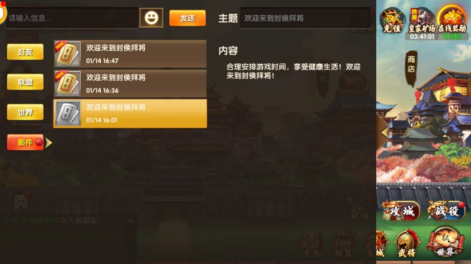 ③邮件功能:玩家可以通过邮件系统来接受系统奖励及消息