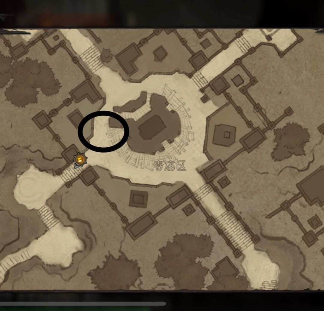 位置寺庙区的左下方。击杀小怪刷新有概率碰到