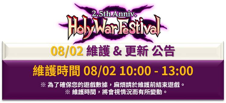 - 期間:08/02 維護後 - 08/30 另行通知為止