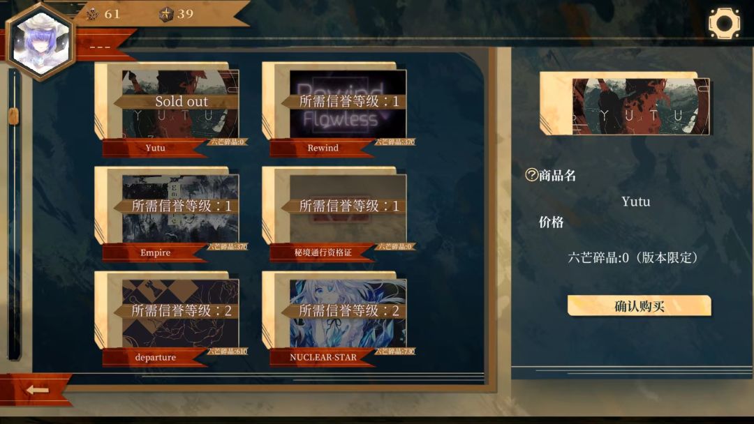 8.这样就可以购买了(购买商品需要消耗一定量的六芒碎晶,可通过打歌获取)