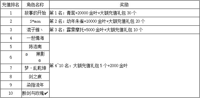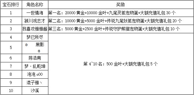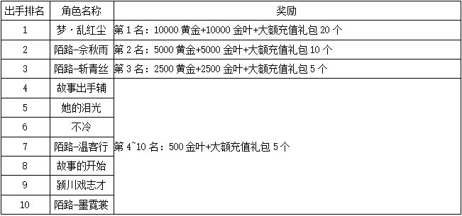 《世界OL》7月新区活动获奖名单