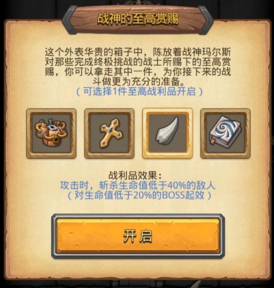 Boss层还将出现战神的至高赏赐可获得1件至高战利品