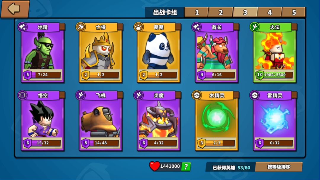 阵容:地精、亡将、萌萌、酋长、火法、悟空、飞机、炎魔、木精灵、雷精灵