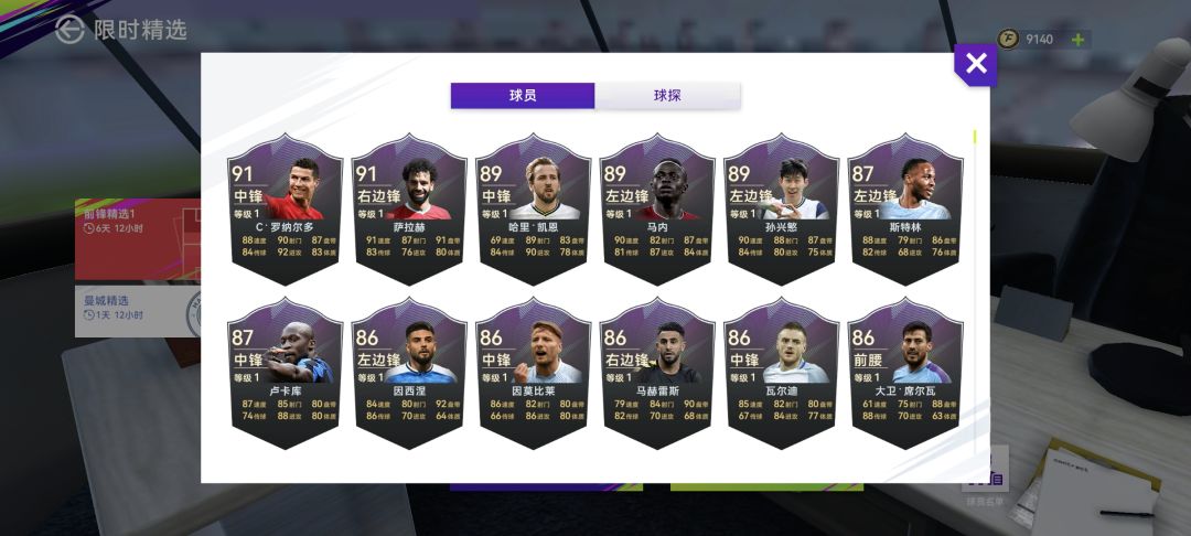 【前锋精选1】限时经纪人明日开放!消耗TF币搜索球员,你将有机会获得顶级锋线球员C·罗纳尔多、萨拉赫、哈里·凯恩、马内、孙兴慜、斯特林、卢卡库等。除此之外,你还可以获得其他明星球员。不要错过这个补强球队的难得机会!