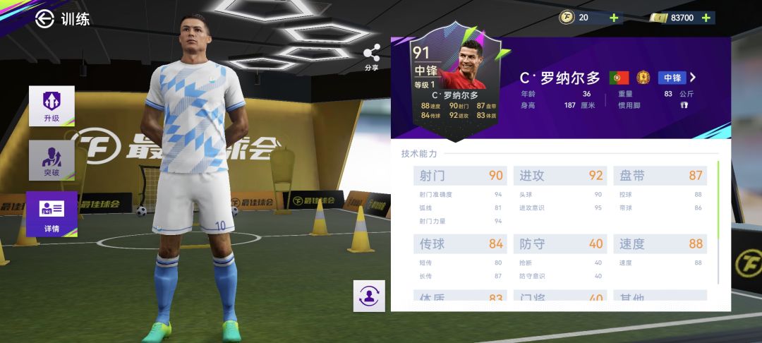 足球场上的赢家,名副其实的进球机器,各种荣誉拿到手软的C罗,绝对是各位主帅心中无比渴望拥有的一名球员。C罗的动态能力哪怕是现在,放到五大联赛都是顶级水准。超高的头球滞空,短跑运动员级别的奔跑速度,都是他最强大的武器。除此之外,他的身体对抗能力也是顶级。