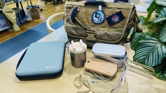 最后的钛制餐具分别是叉子和勺子,握在手上甚至很难感受到重量。附带的挂钩可以在清洗后用于放置晾干,同时餐具还附带一张可供收纳的餐布。凛和抚子的餐布印花也各不一致,凛的是杯面,而抚子的是火锅,印刷相当精致。而更方便的是,这套餐具的大小正好可以放到饭盒里,便于携带,看起来也非常有露营的感觉。