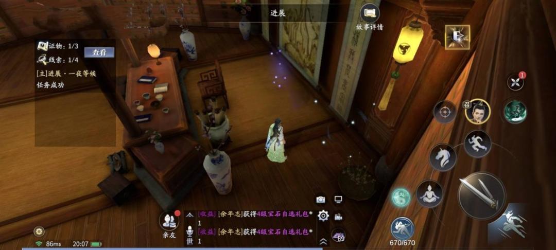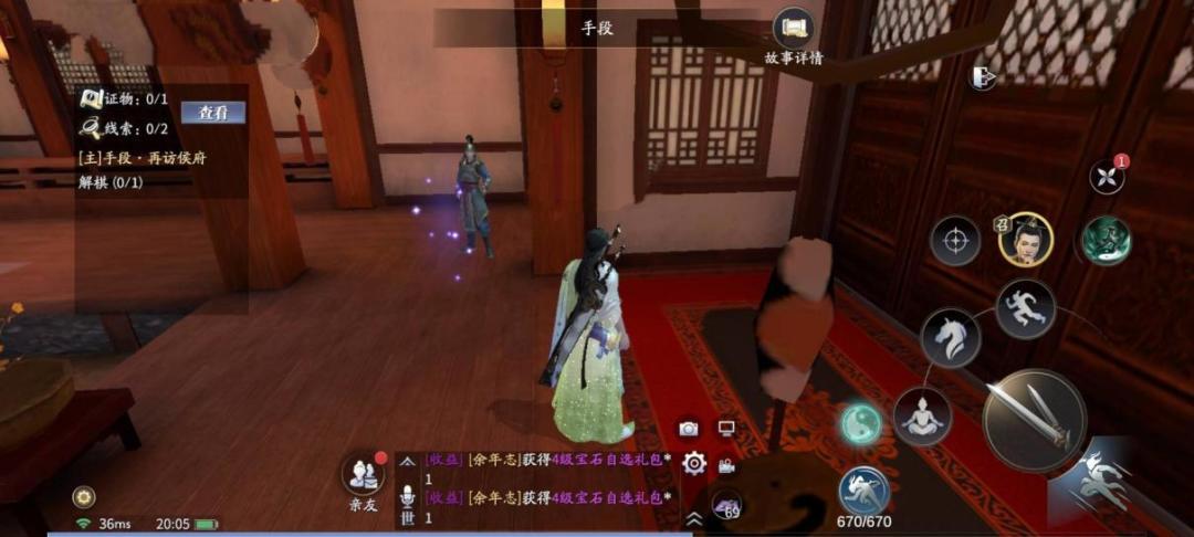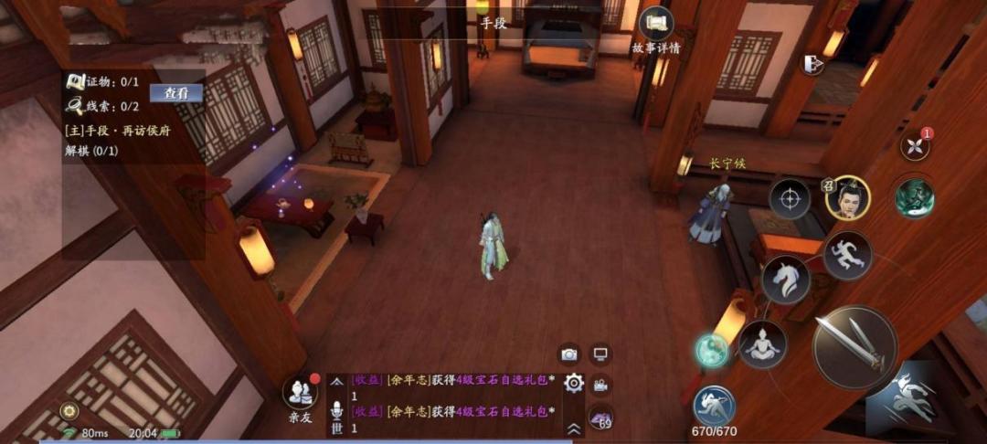 先去侯爷身前一段距离的小几处,触发紫色光点,弹琴环节后(可跳过),获得线索【长宁侯】。
