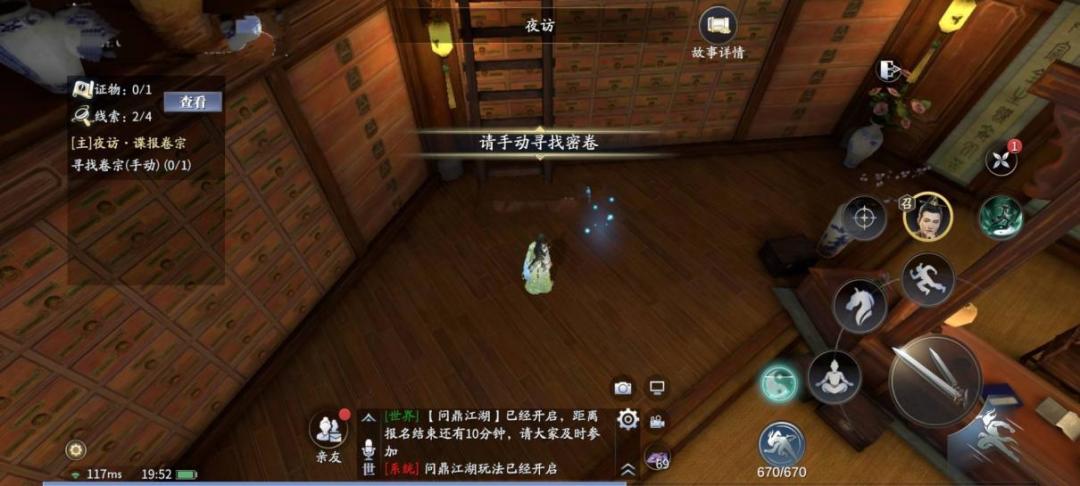 结束后再去最边角的柜子处查看紫色光点,获得线索【鸿胪密卷】。与此同时,解锁支线[追查.意外发现],跟随剧情与卫华对话后获得证物【联名担保】。