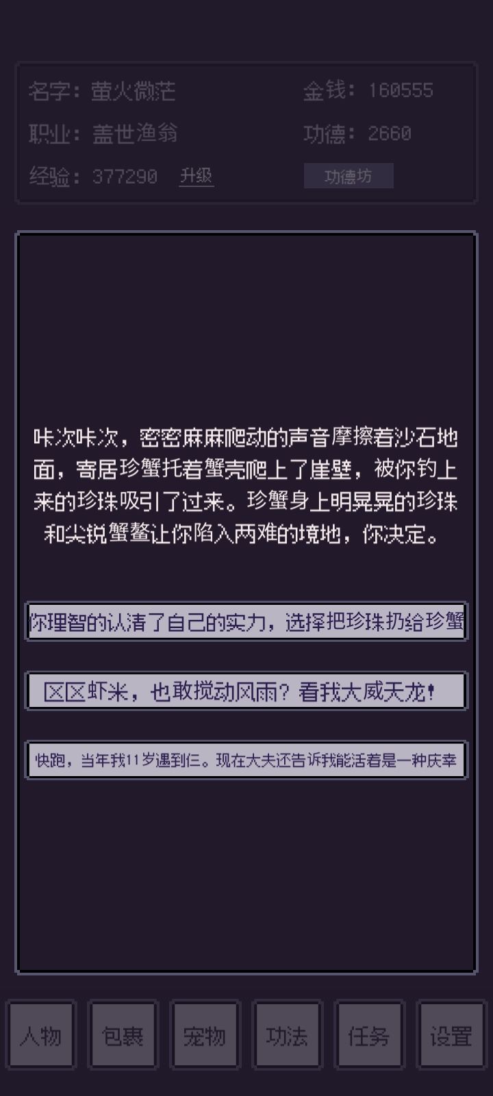 ②宠物可以在战斗时抗伤害,宠物死亡能用回魂丹无限复活,无敌打法,就是有点费功德。