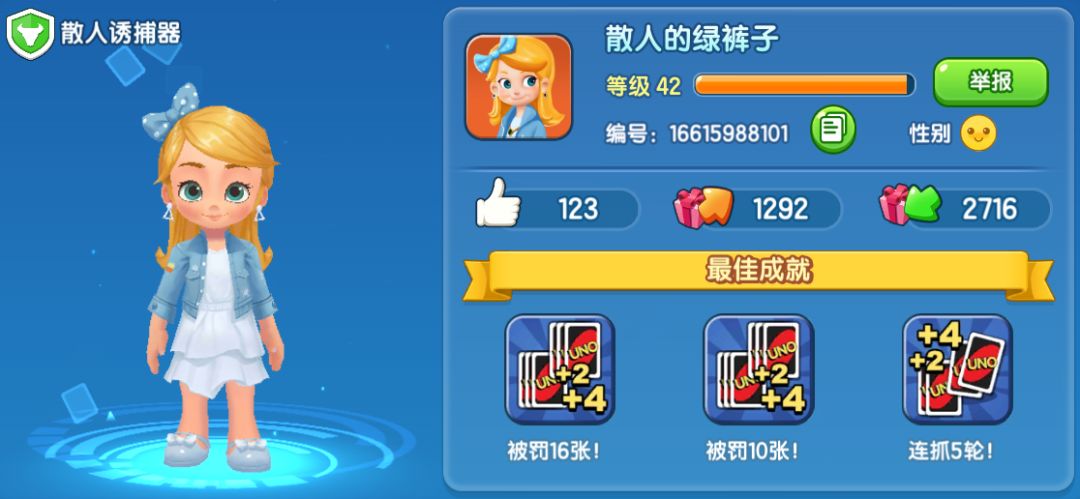 首个月赛冠军“JJoJJ”,“香港杯”周预赛冠军“红豆派”,“天津站”周赛亚军“拉普拉斯兽”………… 如果要说这个俱乐部的尖峰时刻,那一定是在不久前的月赛上包揽了冠亚军的名额。到目前为止,整个俱乐部已经在巡回赛中拿下了1363分的夸张积分。可能这就是真正的超级俱乐部把,叫一声“UNO梦之队”应该毫不为过!