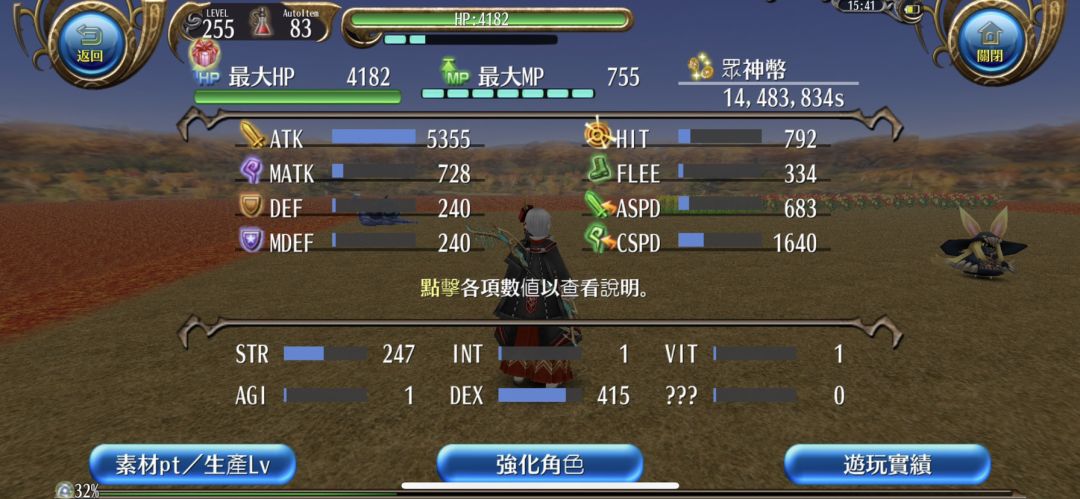 每1DEX增加atk+3 稳定率+0.05% 攻击速度+0.2 命中+1