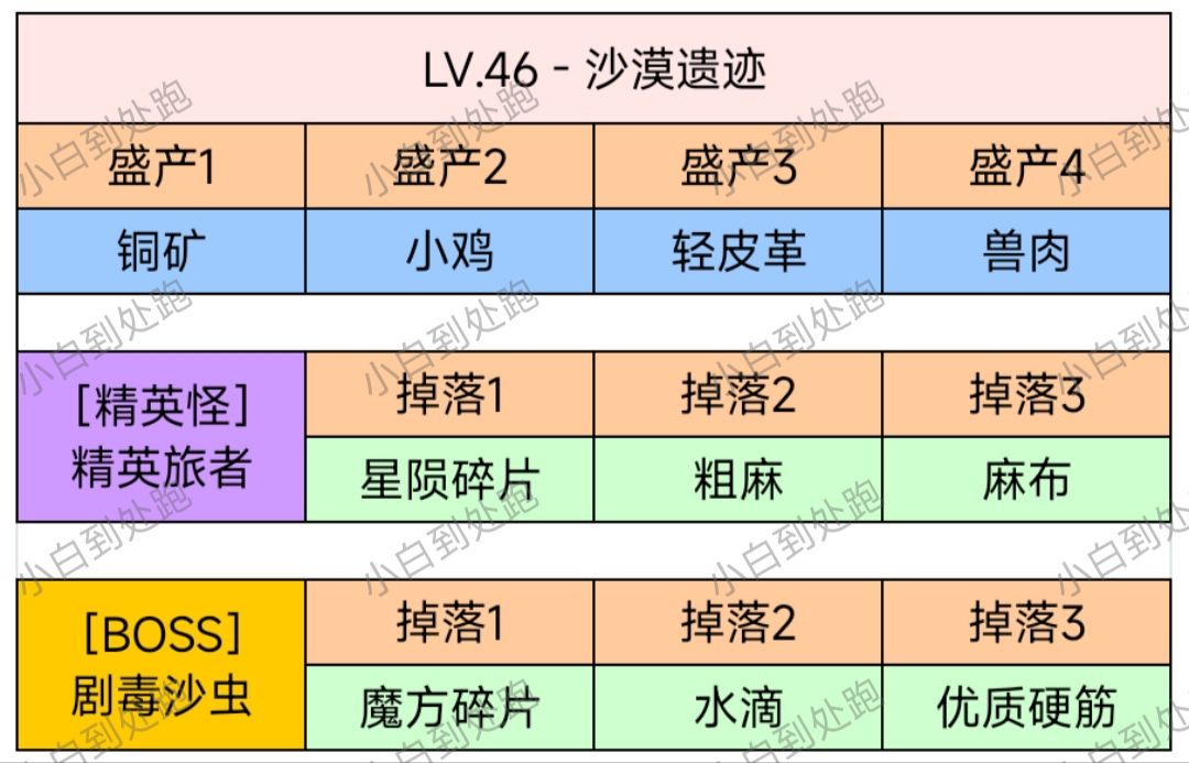 【萌新攻略】3 ~46级副本稀有材料&盛产 材料统计