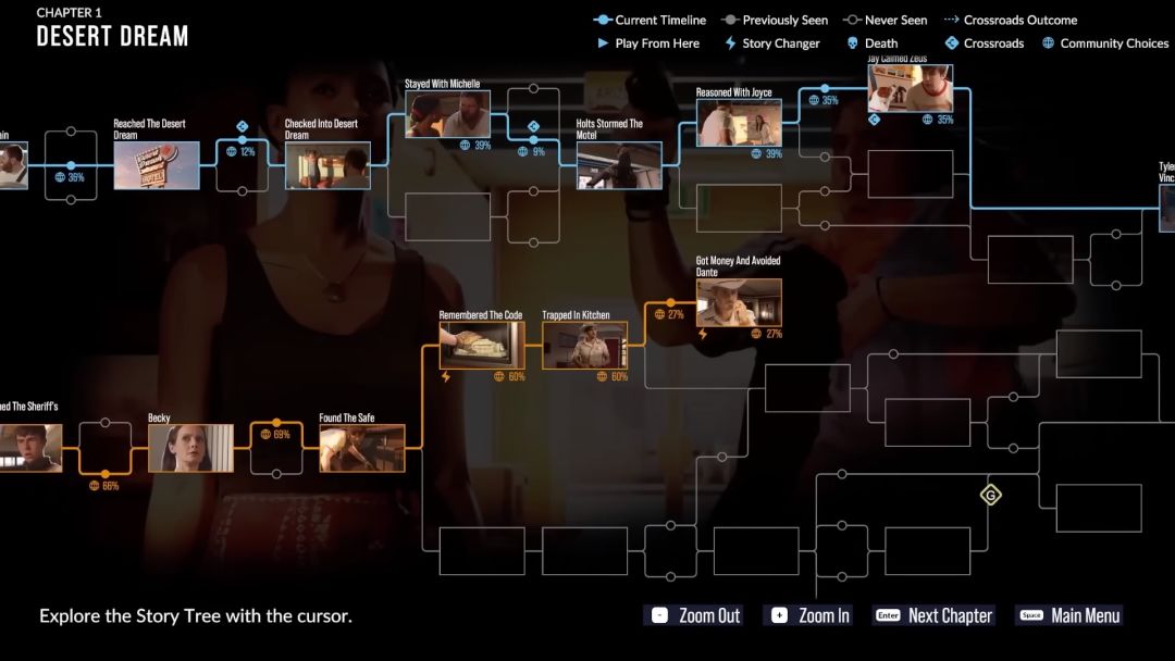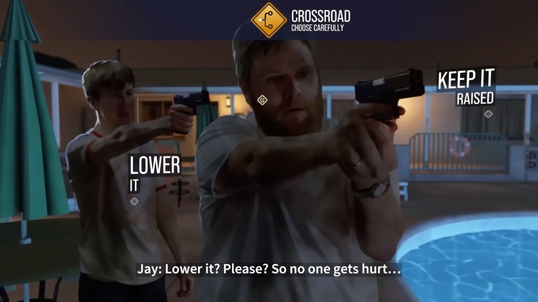 故事以兄弟三人组的一场抢劫为开端,几人在寻找藏身之处时,在沙漠梦想汽车旅店与另一家人发生了冲突。一开始,你会交替扮演温声细语的弟弟杰,以及身为人父的文斯。对于后者,你的选择将决定他是更关心自己陷入困境的职业生涯,还是更在意他的家庭。