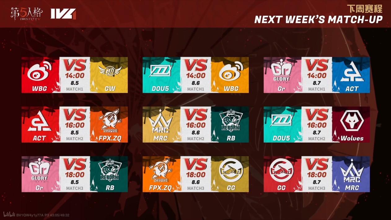 常规赛将迎来最后一周的比赛,季后赛胜者组席位已经基本确定。FPX.ZQ进入胜者组的唯一可能性是,在下周击败ACT和成都GG这两位强劲对手,同时需要WBG或MRC在下周的比赛中连败,希望渺小。而ACT仍有机会和成都GG争夺季后赛的最后门票。同时,下周将有排行榜前三队伍的强强之争,DOU5将在最后一周接连对阵Wolves以及WBG,会碰撞出怎样的火花?让我们一起锁定下周末第五人格赛事官方直播间一探究竟吧!